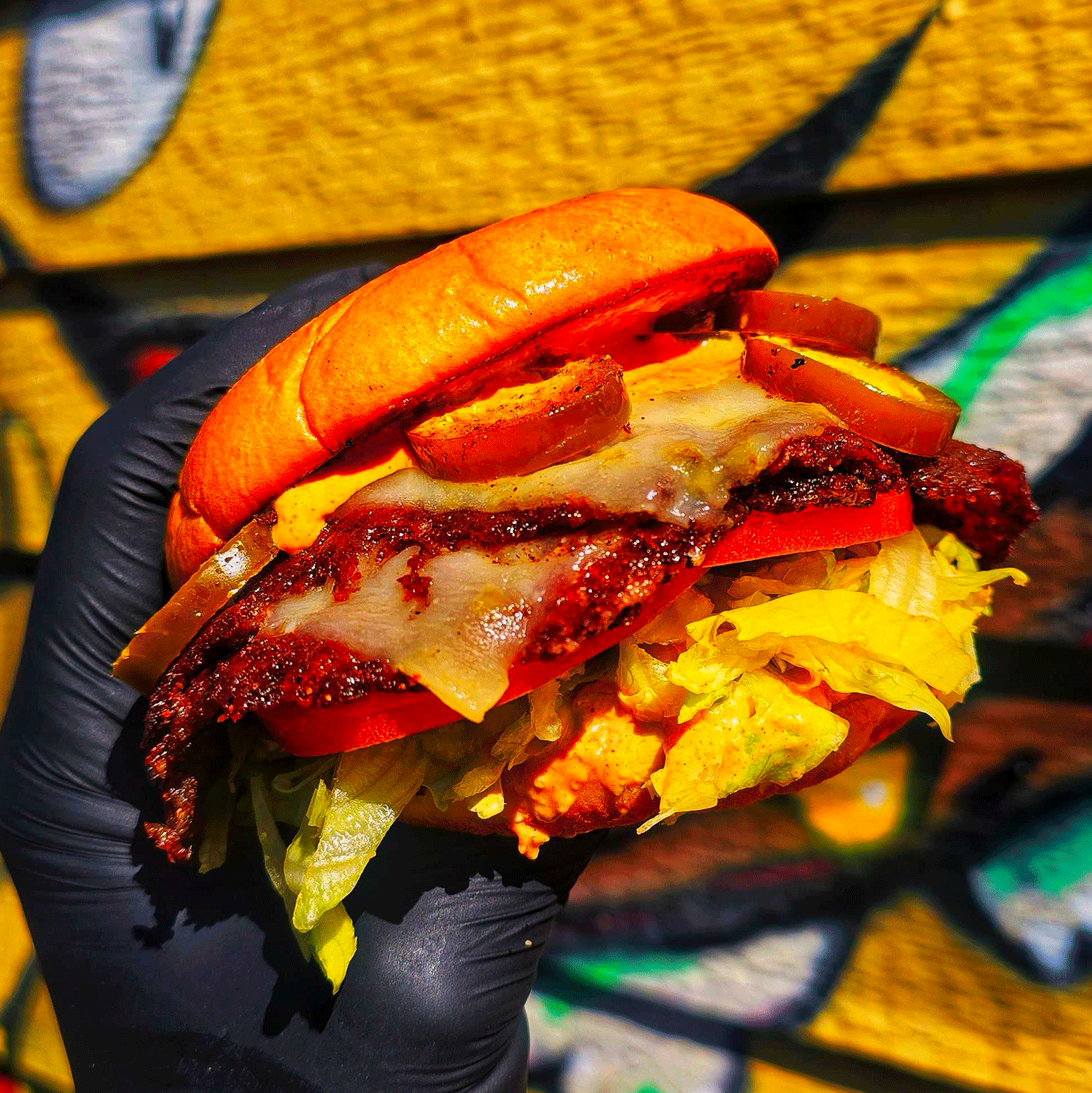 2 smashed patties stacked with crispy bacon, melty pepper jack, and pickled jalapeños, loaded with fresh lettuce and tomato—powered by our SPICY SMASH SAUCE made using HAB sauce.